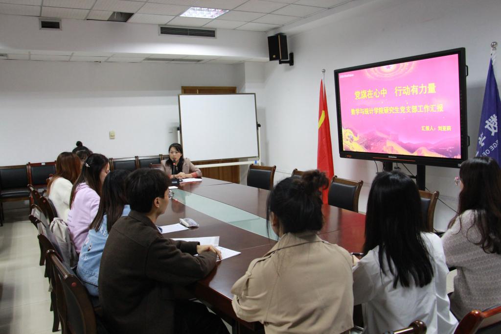 红色基因中有自信,指引我们“不畏浮云遮望眼”;红色基因中有定力,警策我们“风雨不动安如山”;红色基因中有担当,激励我们“越是艰险越向前”。2021年11月5日下午,数学与统计公司研究生党支部在80602会议室召开了研究生党支部党员大会。本次会议由党支部书记刘亚莉同志主持,研究生党支部全体党员同志参加。