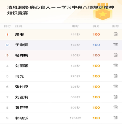 教职工参与积极性高,纷纷利用课余时间认真学习竞赛资料,近10名教师获得满分,充分展现出对中央八项规定精神及公司相关制度的深刻理解和扎实掌握。