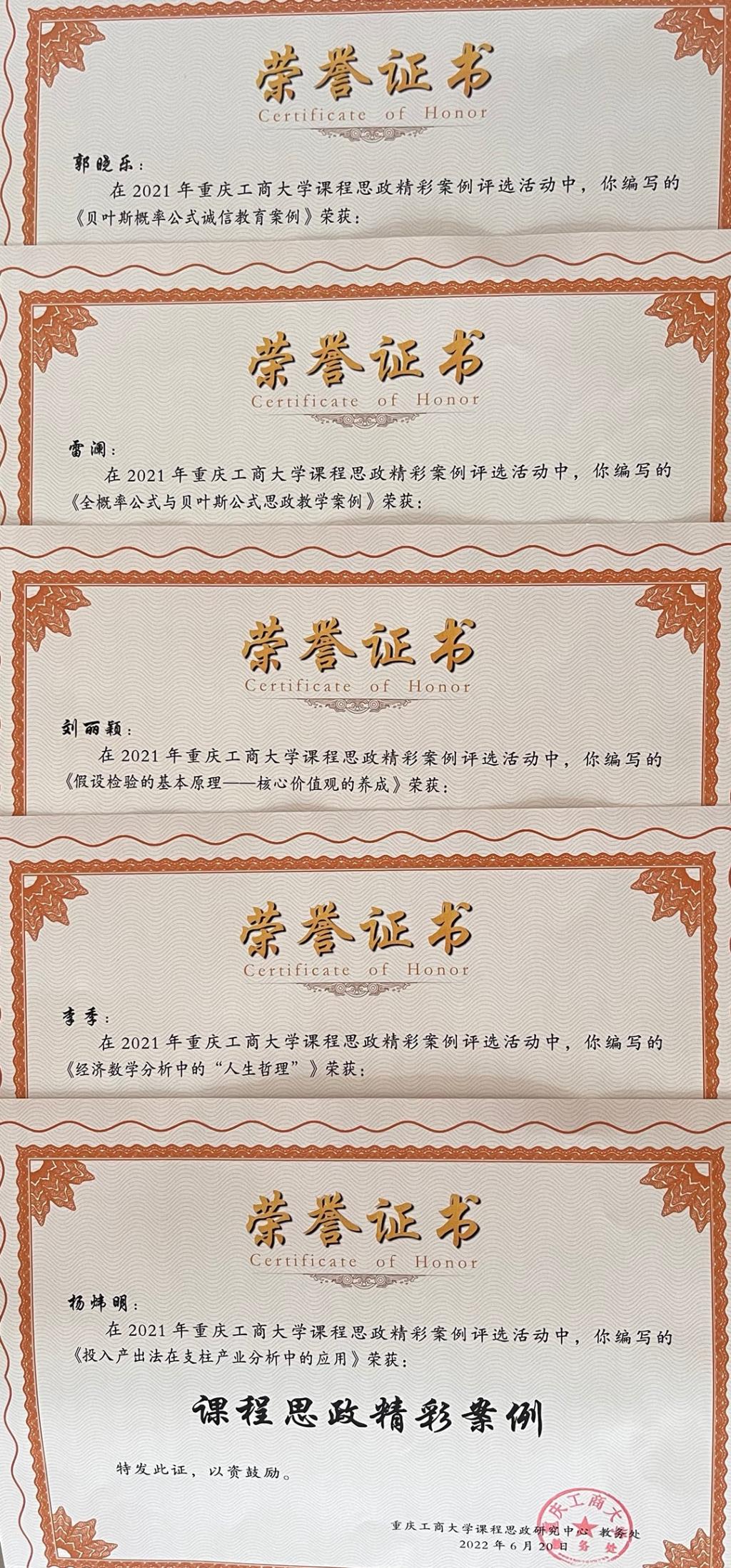 (部分获奖证书)