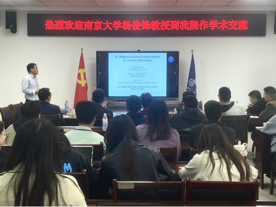3月28日下午,南京大学杨俊锋教授在英国365上市公司会议室80602为公司师生作《求解凸优化问题的自适应Barzilai-Borwein方法》主题学术报告。报告由副经理龙宪军教授主持,孙祥凯教授、曾静教授、李高西教授、李耿华副教授、黄应全老师、苟准博士、黄拉博士以及运筹学与控制论专业的全体研究生参加了此次学术报告。
