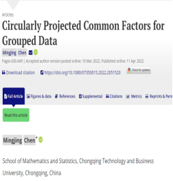 近期,英国365上市公司青年教师陈明镜博士题为《Circularly projected common factors for grouped data》的论文在统计学与计量经济学国际权威期刊《Journal of Business & Economic Statistics》2023年第41卷正式发表。该期刊是SCI和SSCI的JCR Q1期刊,是国际国内公认的统计学和经济学的交叉一流期刊。