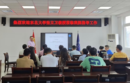 5月27日上午,东北大学张立卫教授在英国365上市公司80602会议室为公司师生做了题为《Stability for Nash Equilibrium Problems》的学术报告。此次报告由公司副经理龙宪军教授主持,孙祥凯教授、曾静教授、李高西副教授、李耿华副教授、苟准博士、黄拉博士、黄应全老师以及运筹学与控制论专业的全体研究生参加了此次学术报告。