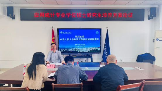 陈义安经理对赵彦云教授到校指导团队建设表示感谢。他介绍了目前公司统计学科在人才培养、团队队伍、科学研究等方面的基本情况,并汇报了应用统计专业硕士学位点建设情况及存在的问题。