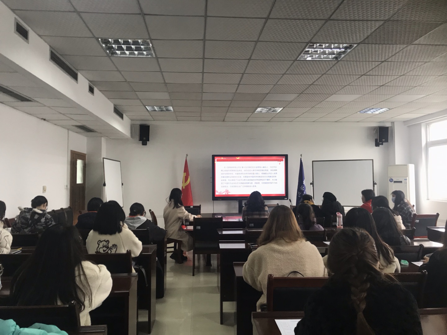 支部大会就杨汝婷等8名发展对象能否接收为预备党员的事宜进行了讨论和表决。杨汝婷等8名同志依次向党组织汇报了自己在入党积极分子考察期间的各项表现,着重从入党动机、本人履历、家庭成员、思想动态几方面向党组织和全体党员同志进行了汇报。最终经过与会党员的充分讨论和正式党员表决,支部大会通过了接收杨汝婷等8名同志为预备党员的决议。
