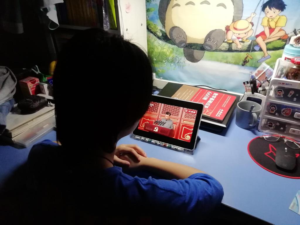 员工党员们在图书馆、寝室、教室聚精会神观看大会直播,目睹着如今的繁华盛世,共享着这一历史时刻的荣光,大家感到无比的骄傲与自豪。习总书记在会上回顾了中国共产党百年发展历程,庄严宣告“我们实现了第一个百年奋斗目标,在中华大地上全面建成了小康社会”,铿锵有力的讲话回荡在整个天安门广场上,激励着我们坚定步伐,坚守初心,继续迈向伟大复兴的征程。